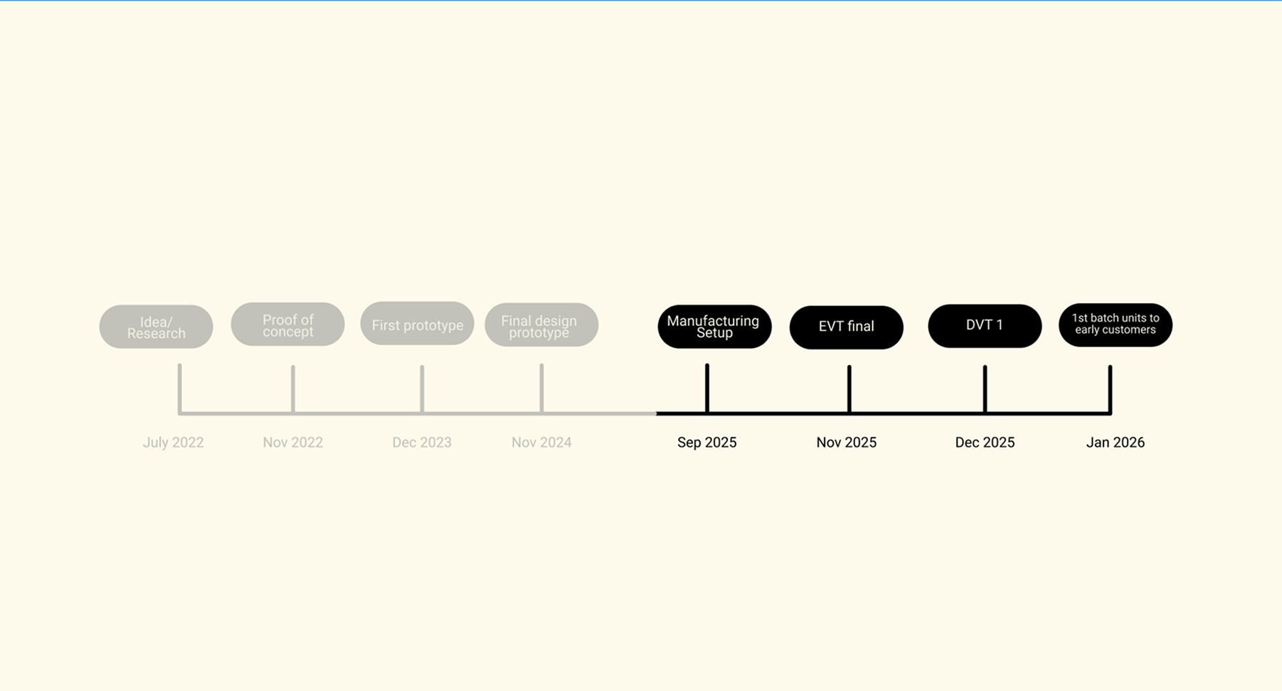 - Product status: Finalizing EVT and preparing pre-production planning.